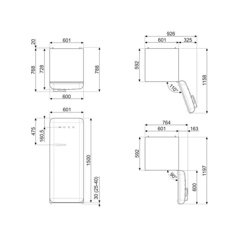 Lățimea produsului cu ușile deschise peste 90°: 926 mm