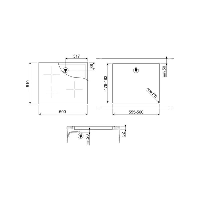 Distanța minimă de instalare față de plita electrică: 650 mm